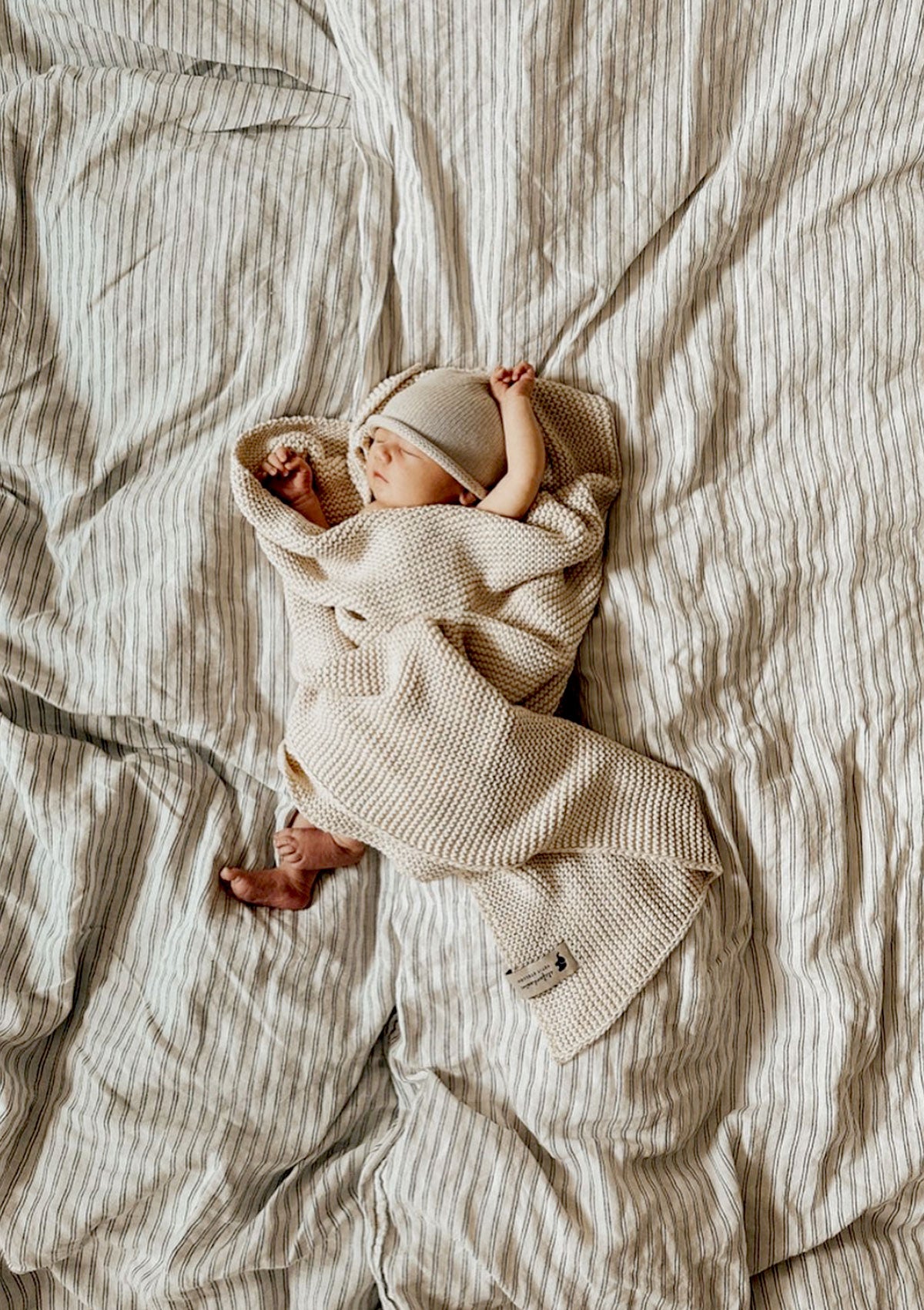 Baby blankets immediately create a cuddly atmosphere. In addition to the warming effect, the slightly heavier knitted blanket also has a calming effect on the baby.